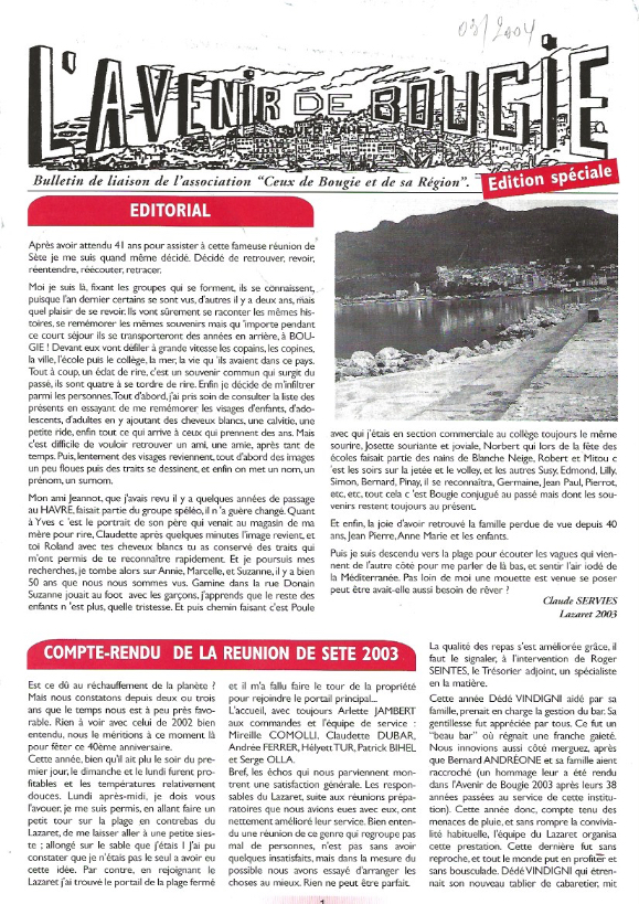 3 - Compte-rendu de l'assemblée générale de novembre 2003.