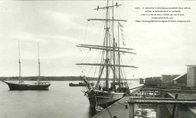 Nous avons retrouvé sur un site retracant l'histoire de la Ahlström, une photos représentant un des deux voiliers que possédait Anti Ahlström en 1856, le "Saarikoski" et le "Lankoski". |