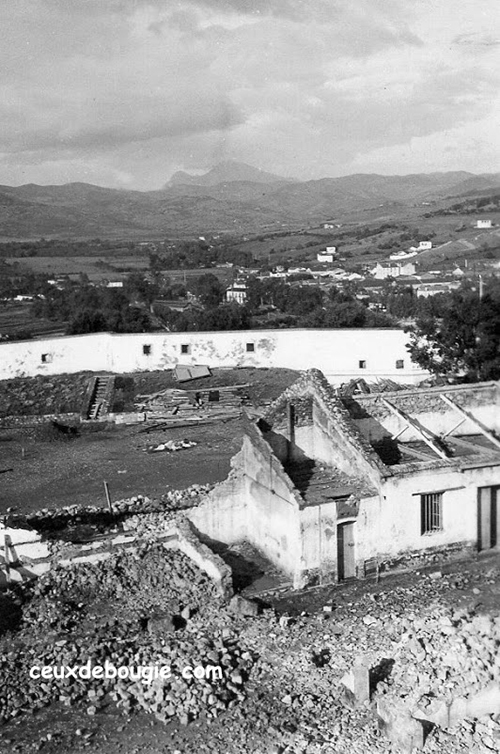 Sur ces deux photos, démolition des logements de fonctions de famille d'officiers du régiment en garnison à Bougie.