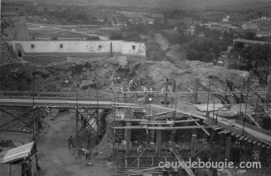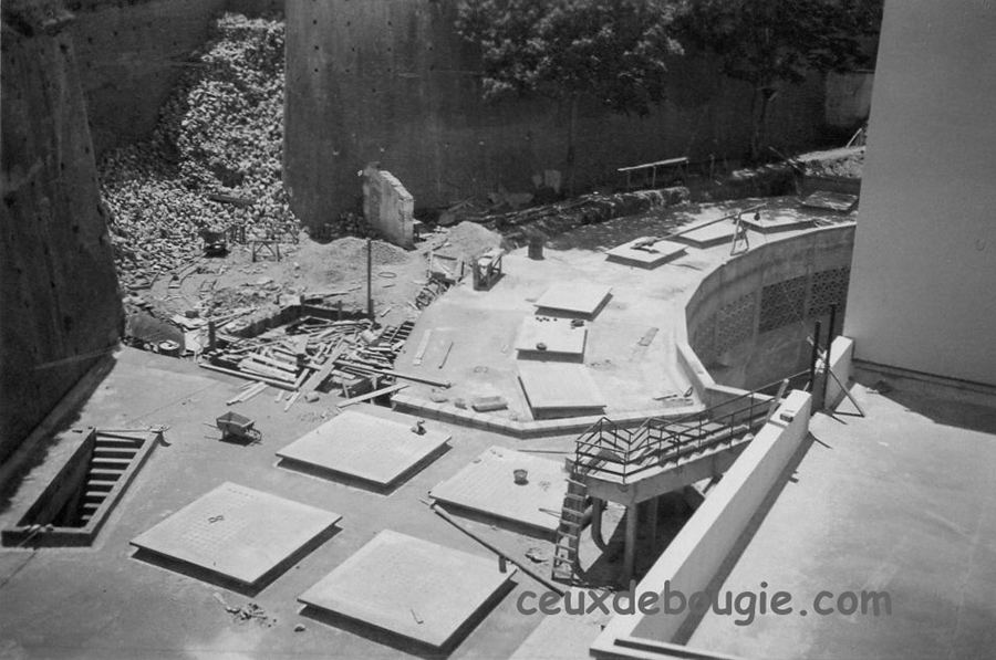 | Finitions de l'arrière du théâtre. Sous les dalles, le Marché. Le stock de moellons a pratiquement disparu... | |