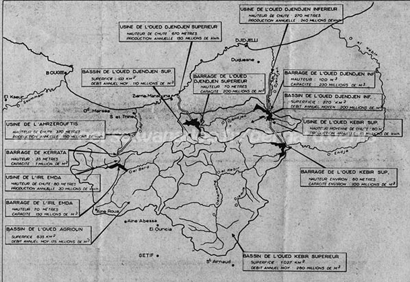 A la fin du XIX° siècle existait une petite usine thermique fonctionnant au coke, à l'emplacement du garage Hadjadj au carrefour Profério, au début du môle de la Casbah et à l'extérieur des remparts qui, à l'époque, se poursuivaient un peu dans la mer . Cette usine était destinée à fournir l'électricité servant à éclairer les quais du port et quelques rares autres lieux publics.