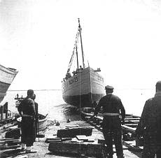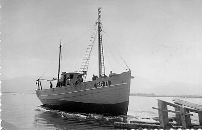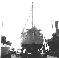 | Remise à l'eau d'un chalutier - De dos Dominique DATO charpentier de marine | |||||||||||||||||||||||||||