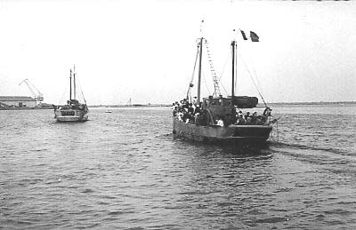 de la halte en mer, la houle remuait les bateaux et certains fidèles,