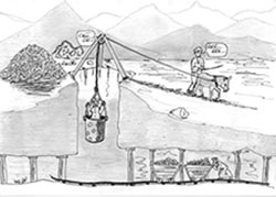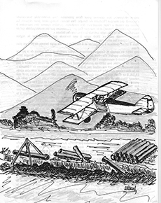 Le premier bâtiment, où il y a une grande cheminée, abritait le fameux moteur SULZER(1) à gaz pauvre(2) qui actionnait la pompe de refoulement et de remontée de l’eau de la source des Aiguades par le haut de Bouak, vers la ville de Bougie.
